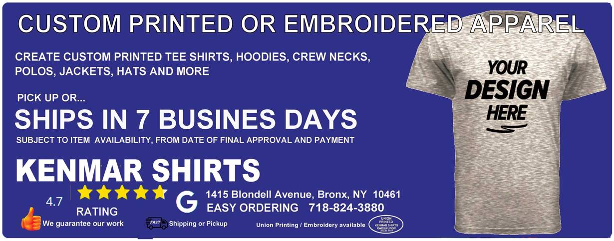 with a PROFESSIONAL…. Visit our Showroom OR Call 718-824-3880 Screen Printing * Digital Printing * Embroidery Union Printing * American Made or Union Made Garments ADULT TEES YOUTH TEES POLOS LONG SLEEVE TEES .