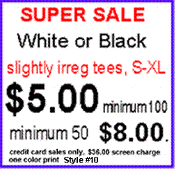 one color print + 36.00 scrn chargeadult sizes only, C/C sale only M |